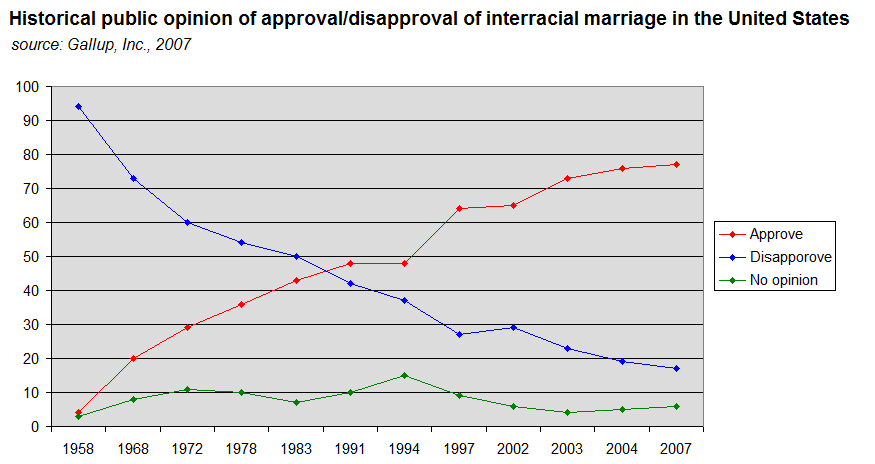 The approval of interracial marriage serves as a direct proxy for the decline of Christianity. This is a condemnation both of the modern Judeo-‘Christian’ who approves of ‘immigration’ and other such wickedness and the neopagan or other apostate who draws the wrong conclusions.